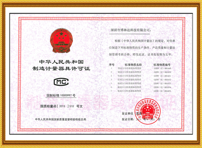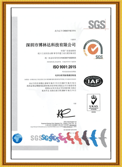 十幾年來,博林達(dá)不僅在標(biāo)準(zhǔn)物質(zhì)領(lǐng)域持續(xù)榮獲國家級的資質(zhì)認(rèn)證,2017年10月博林達(dá)更榮獲了“國家高新技術(shù)企業(yè)”,該項榮譽(yù)是政府對博林達(dá)的產(chǎn)品領(lǐng)域、研發(fā)能力、專利成果、研發(fā)投入、科技管理水平和人才結(jié)構(gòu)的充分肯定,是又一個高含金量的國家級的資質(zhì)認(rèn)證,同時也是博林達(dá)發(fā)展史上一座輝煌的里程碑!